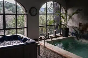 L’espace détente avec jacuzzi et piscine intérieure chauffée vous permet de vous détendre en toutes saisons et d’admirer la vue imprenable sur la forêt cévenole. Vous pourrez également réserver une large gamme de massages .