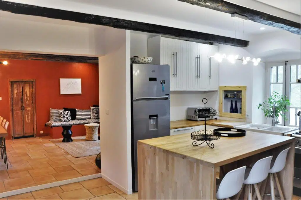 Le gite dispose d’un grand salon commun de 45 m² richement doté, d’une cuisine familiale parfaitement équipé, d’une salle à manger avec une grande table conviviale ainsi qu’un espace en terrasse idéal pour se retrouver en famille. Les espaces extérieurs offrent une vue saisissante sur la nature cévenole.